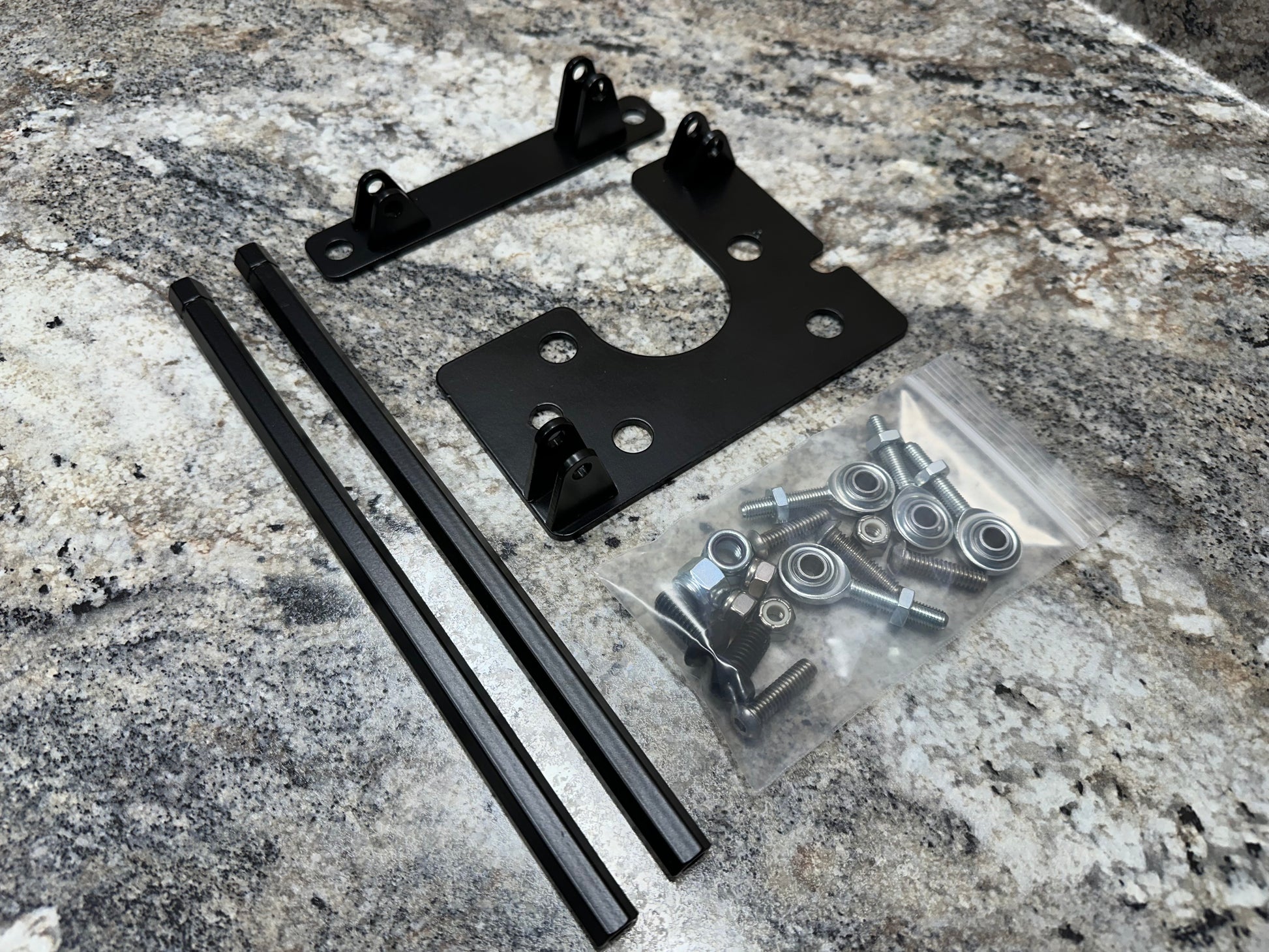 This kit includes four products designed and used by KruseBuilt:  The Export Brace, the Monte Carlo Bar, the Brake Master Cylinder Support, and the Front Crossmember.